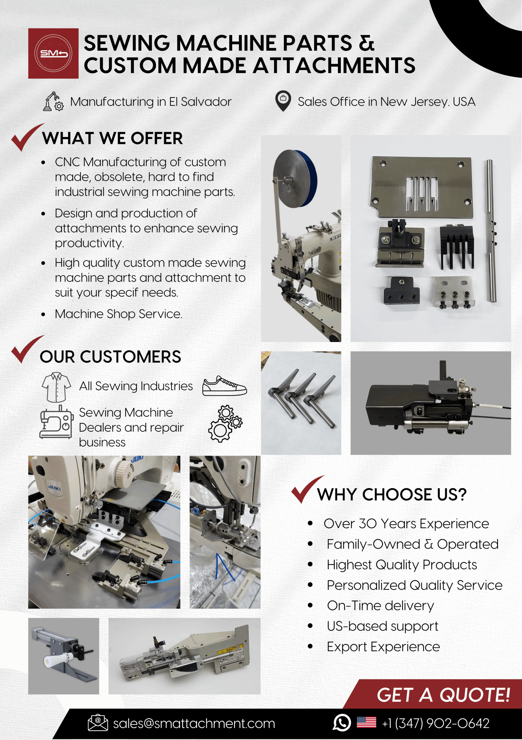 - Manufacturing of metal products, custom-made accessories, sewing machine parts, and accessories.